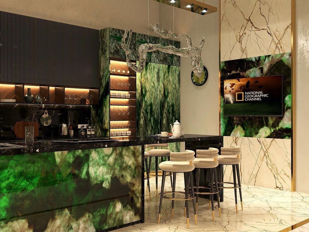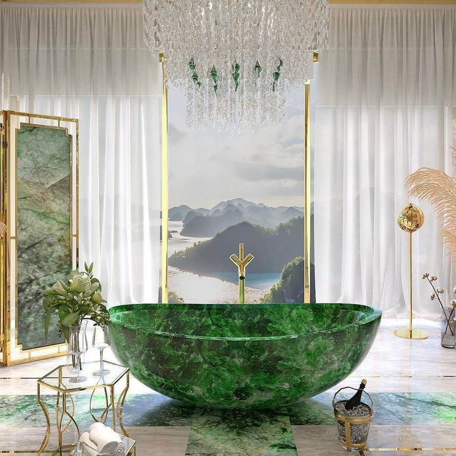 将非凡翡翠,幻化为空间的史诗:从反射光泽的地坪,到自成光影的艺术墙板;从晶莹的马赛克镶嵌,到温润的器物台面,乃至点睛的墙艺、家具、雕塑与珠宝。我们以翡翠,重写家居奢华的定义